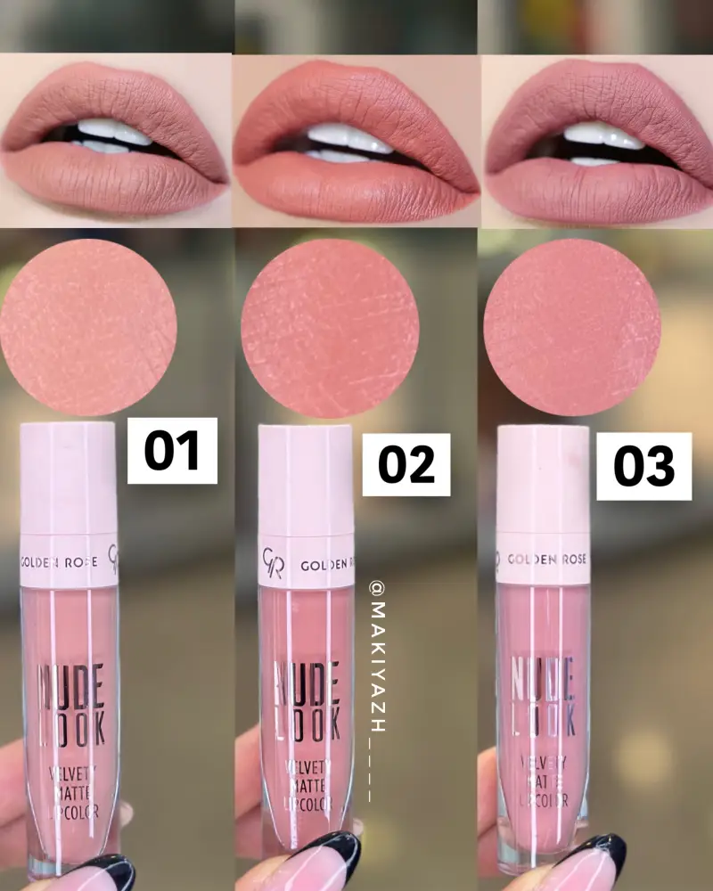 تنوع رنگ در رژ لب مایع مات نود لوک، یکی از دلایل محبوبیت آن است. از کرال نود گرم شماره ۰۱، که برای پوستهای گندمی عالی است، تا تنهای سردتر مثل شماره ۰۳، که با پوستهای روشن همخوانی دارد. هر رنگ، الهامگرفته از زیبایی طبیعی، لبها را برجسته میکند بدون اینکه مصنوعی به نظر برسد.